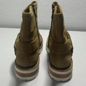 NEW FRYE Olivia Harness Short Suede Womens Size 8 Comfort Boot White Brown Gold