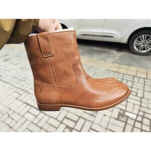 NEW! FRYE Women’s ANNA Shortie Short Leather Pull On Ankle Boots Camel Size 9 M