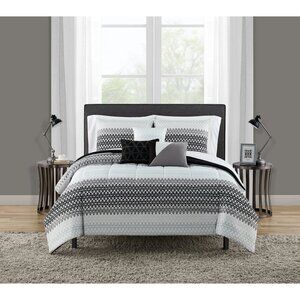 NEW FULL SIZE 10 Piece Bed in a Bag Comforter Bedding Sheets 3 Decorative Pillows Black and White Geometric Pattern