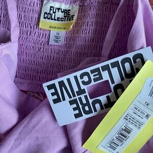 NEW FUTURE COLLECTIVE O Ring Crop Top Purple Size 1X Boho Coastal Vacation Smocked Back Side Zipper Sleeveless