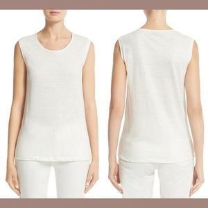 Signature mollini beading highlights the neckline of an essential tank in a comfortably lightweight linen-blend jersey with a softly slubbed finish.