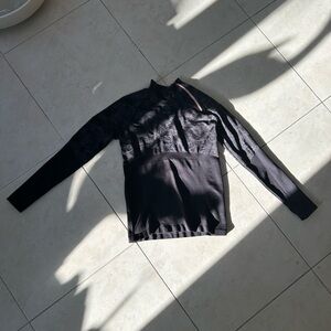 Stylish black top with gray patterns. Long sleeves and sleek design. Ideal for active wear.