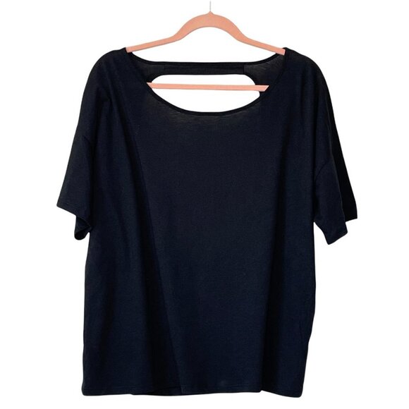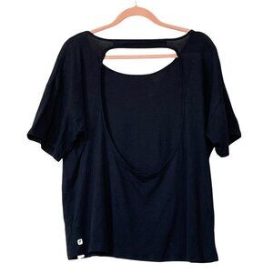 NEW Fabletics Black Big Keyhole Back Short Sleeve Tee Sz. L