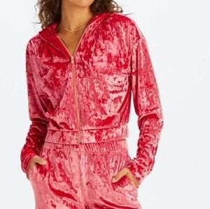 Fabletics Crushed Velour Zip-Up Hoodie in Strawberry NWT