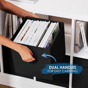 SUPERIOR STURDY DESIGN: The cube storage organizer bins will exceed your expectations for quality, durability, and style. Reinforced handles on both sides enable quick and easy carrying. DIMENSIONS: 10.5(W) x 10.5(D) x 11(H) inches (26.5 x 26.5 x 28 cm).