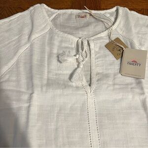 NEW Faherty Celina Puff Sleeve Organic Cotton Blouse in White Sz XS Boho