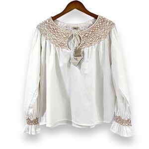 NEW Faherty Laura Embroidered Top 100% Organic Cotton Size S Whisper White $148