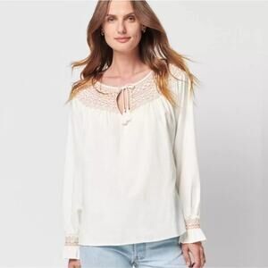 Faherty Laura Embroidered Top 100% Organic Cotton Size S Whisper White.