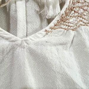 New with tags but there is a small spot where a dark thread got woven into the fabric near the neckline. Please see photos. Original retail price $148.
