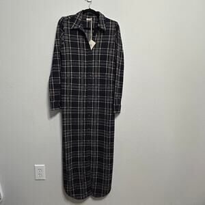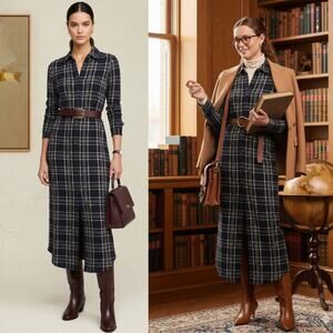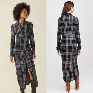 NEW Faherty Legend Sweater Maxi Dress Plaid Navy Blue Old Money Medium 8-10