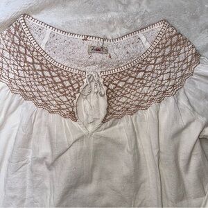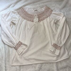 NEW Faherty Smocked Laura White Tan Peasant Knit Top Boho Embroidered Lagenlook
