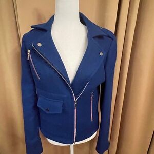 NEW! Falconnable Blue Wool Moto Jacket Size 38/6