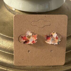 NEW Fall Maple Leaf Stud Earrings Autumn Print Lightweight Acrylic Handmade