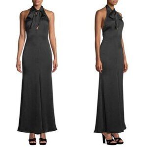 NEW Fame and Partners 10 The Ace Trumpet Satin Gown Maxi Formal Dress Black Bow
