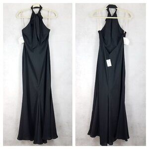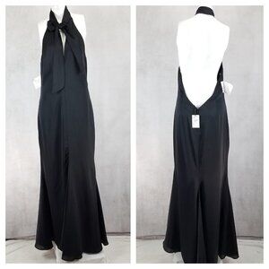 Fame and Partners Size 10 The Ace Trumpet Satin Gown Maxi Formal Dress Black NEW $350