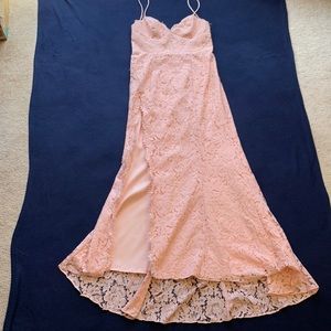 New Fame and Partners BHLDN Anthropologie Charlotte blush pink lace overlay maxi dress size 6
