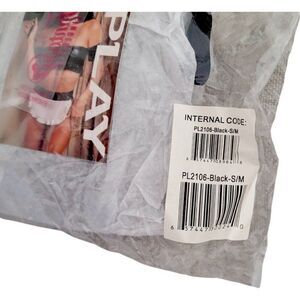 Fantasy Lingerie PLAY lingerie costume four piece set. Includes liquid latex crop top, apron, neck piece, and panty. Style PL2106.