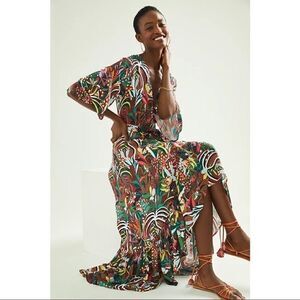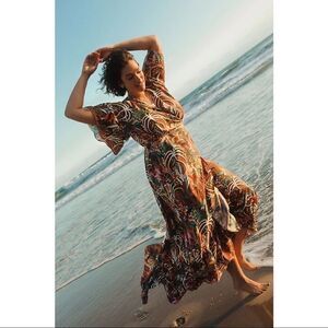 NEW Farm Rio Anthropologie Fiesta Floral Botanical Wrapped Maxi Dress X-Small