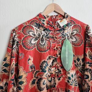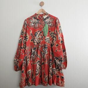 Farm Rio Red Floral Long Sleeve Mini Dress - Whimsical Print - Women's Size XLarge (XL) - NWT