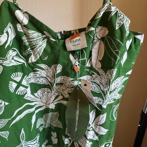 NWT Gorgeous Farm Rio Forest Soul dress. Size M 100% cotton with adjustable bubbled straps in a bright green leaf motif. Bought it for a wedding and ended up not wearing it. Would love to pass it on to someone who will love it.