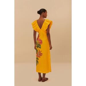 NEW Farm Rio Off-White Spring Awakening Euroflax Premium Linen Midi Dress