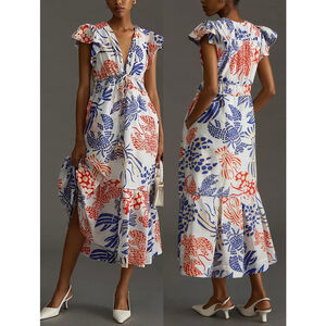 NEW Farm Rio Printed Ruffle-Sleeve V-Neck Dress Sz XS