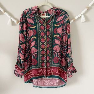 NEW Farm Rio Seashell Tapestry Buttoned Shirt Floral Salmon Pink Small