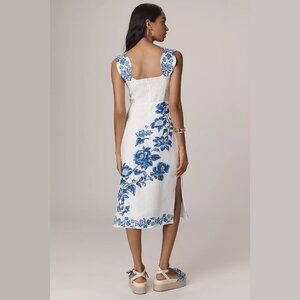 NEW Farm Rio Size S, M, L Floral Cascade Wavy Linen Sleeveless Midi Dress White