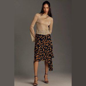 NEW Farm Rio Size XL Asymmetrical Tiered Leopard Print Midi Skirt - Blue Motif