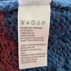 - 77% acrylic, 23% wool. Machine wash, tumble dry