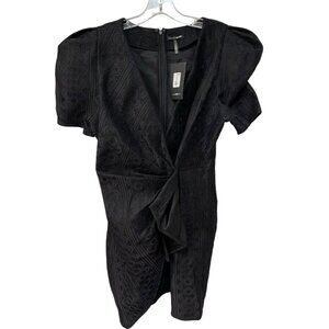 NEW Fashion Nova Here to Stay Dress Black Puffy Sleeve Front Knot Size Large