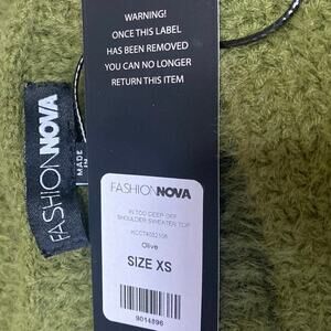 NEW Fashion Nova In Too Deep Olive Green Off Shoulder Knit Crop Sweater Top XS