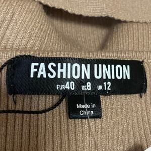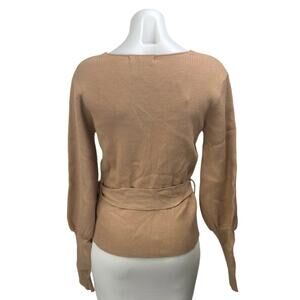 NEW Fashion Union Brown Rib Knit Belted Square Neck Long Sleeve Sweater Top Sz 8