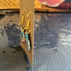 NEW Faux Stone Swirl Polymer Clay Fan Dangle Earrings