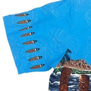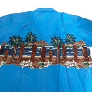 NEW Favant Aloha Shirt Men’s Size Large Hawaiian Blue Short Sleeve Button Up