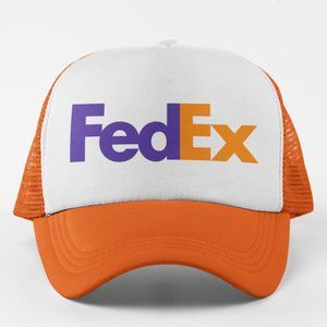 NEW FedEx Logo Foam Trucker Mesh Snapback Hat 2-TONE: ORANGE WHITE
