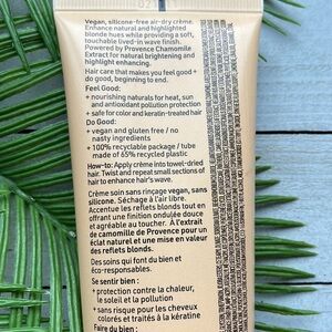 A nourishing air-dry crème helps brighten and moisturize blonde hair over time and is infused with light-enhancing minerals to create effortless waves & immediate subtle radiance.