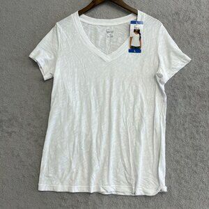 NEW Felina Women's L White V Neck Short Sleeve T Shirt Modal Cotton Blend