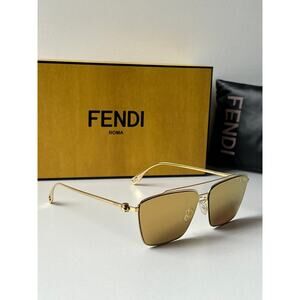 NEW Fendi FE40110U Baguette Gold Mirrored Aviator Sunglasses