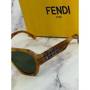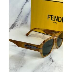 NEW Fendi FE40130F Logo Brown Aviator Sunglasses