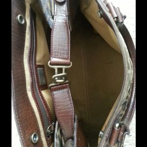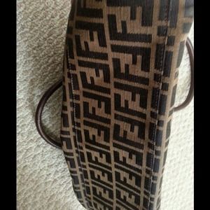 NEW Fendi Jacquard Logo Zucca 'Bag De Jour' Satchel. It was a gift that wasn't to my liking. It comes with its original dust bag, box and shopping bag (no tags) It has rolled leather handles and zucca patterned canvas with perforated logo leather accents with exterior side slip pockets. Hook close strap gathers bag at center. Logo jacquard lining with interior zip pocket. Measurements: 15.5" L x 6" W x 10"H . Two exterior side pockets. One zip interior pocket. Handle Drop: 7.25"