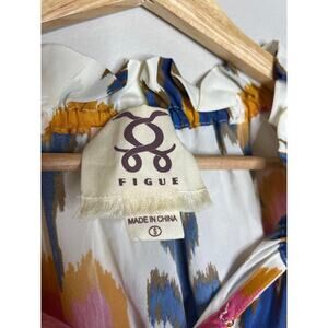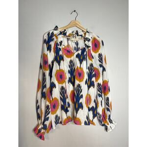 NEW Figue Lianna Ruffled Long Sleeve V-Neck Tassle Blouse Top Flower Parchment
