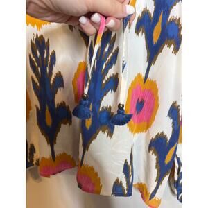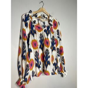 Figue Lianna Ruffled Long Sleeve V-Neck Tassle Blouse Top Flower Parchment. New without that!