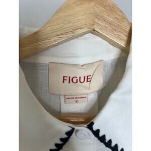 NEW Figue Prudence Button Down Blanket Stitch Long-Sleeve Top White Size: 8