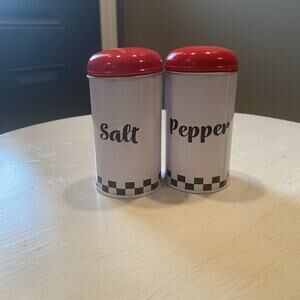 Crafted from tin material, these shakers are not antique and are not handmade. They are a great collectible item for anyone who loves kitchen gadgets and enjoy collecting unique items. Get your hands on these stylish shakers today and add some flavor to your meals!