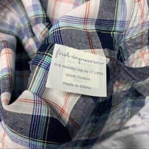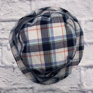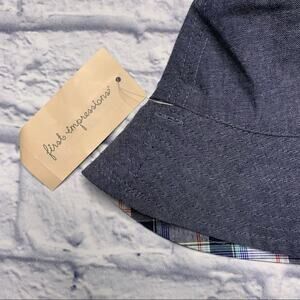 Size 0-6 months (up to 17 pounds) First Impressions Reversible Sun Hat in Heathered Blue/Plaid. New with Tags.