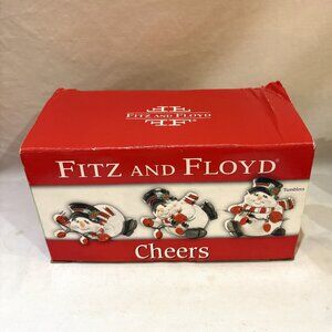 Fitz and Floyd Cheers Snowman Tumblers Merry Jolly Lights Set of 3 Figurine New in Box