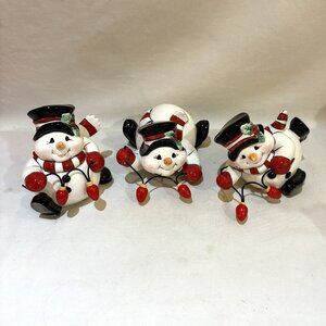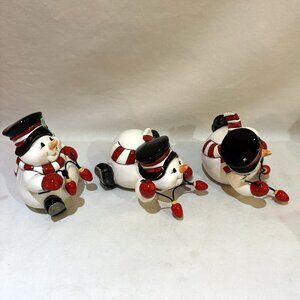 NEW Fitz and Floyd Cheers Snowman Tumblers Merry Jolly Lights Set of 3 Figurine