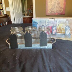 Home essentials Flatware Caddy with Galvanized tray, 3 Glass jars and 3 hanging chalkboards