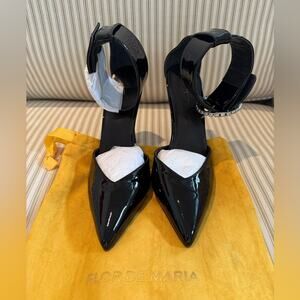 Gorgeous new unused black patent pointed toe heeled pumps by high end designer Flor de Maria.